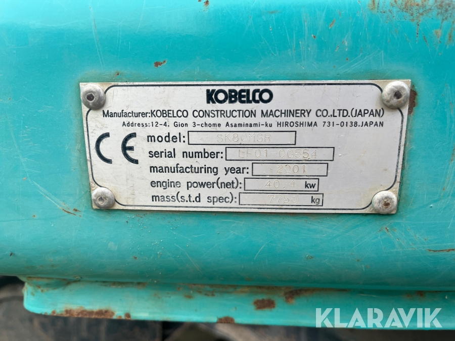 Grävmaskin Kobelco 80 MSR med flera redskap