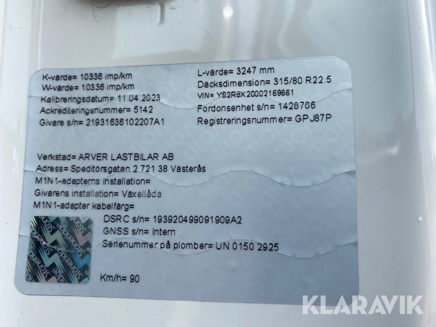 • Serie/chassinummer framgår