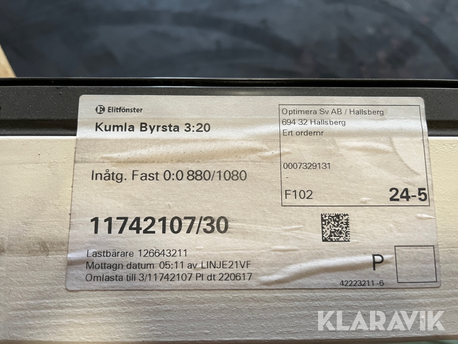 Du som köpare är skyldig att kontrollera objektet vid hämtning. Skiljer sig något avsevärt jämfört med informationen på klaravik.se? Kontakta då Klaravik innan du tar objektet från platsen. Läs fullständiga köpvillkor.