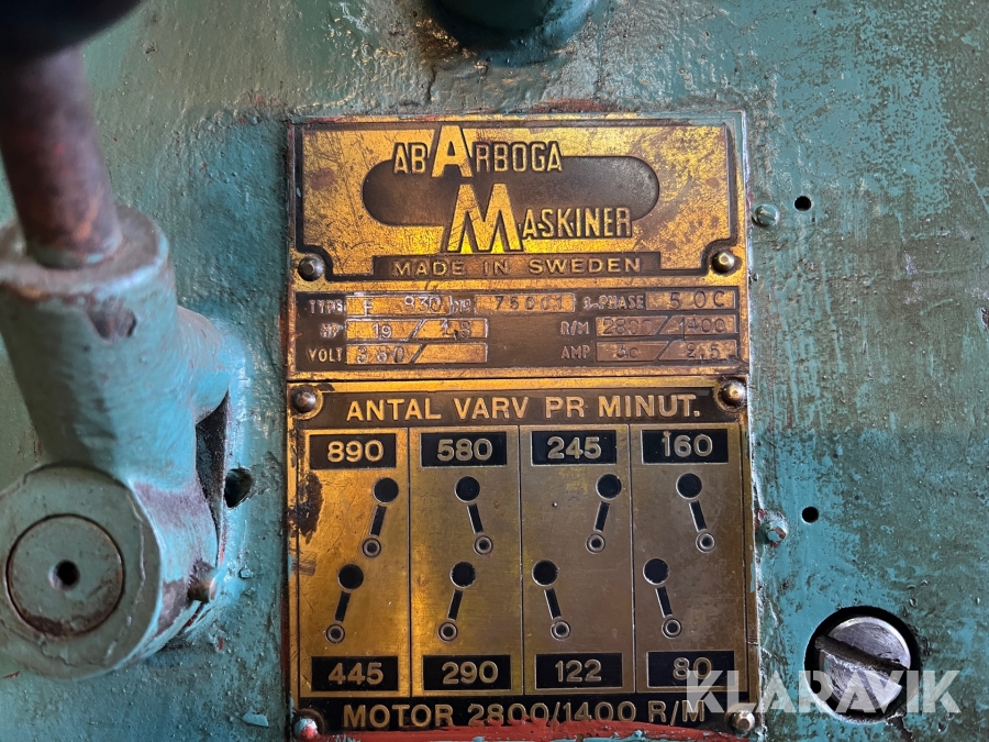 Pelarborrmaskin ABArboga F830 80-890 V/m