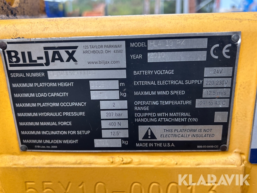 Vikbomslift Biljax HLA 19PX