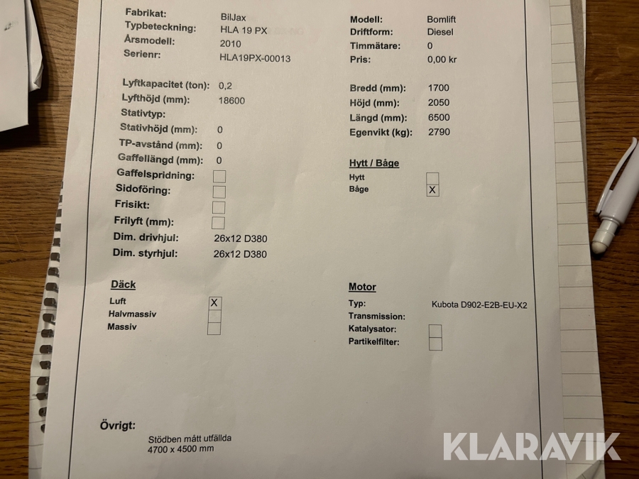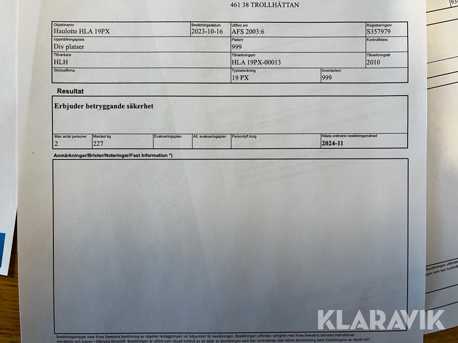 Du som köpare är skyldig att kontrollera objektet vid hämtning. Skiljer sig något avsevärt jämfört med informationen på klaravik.se? Kontakta då Klaravik innan du tar objektet från platsen. Läs fullständiga köpvillkor.