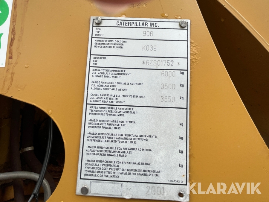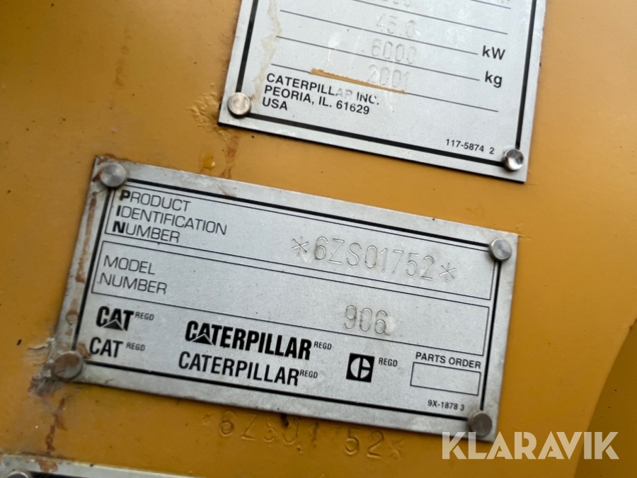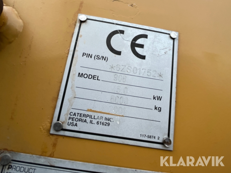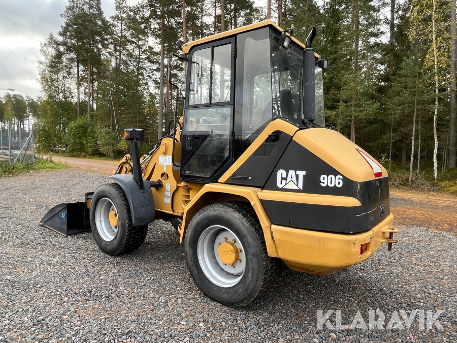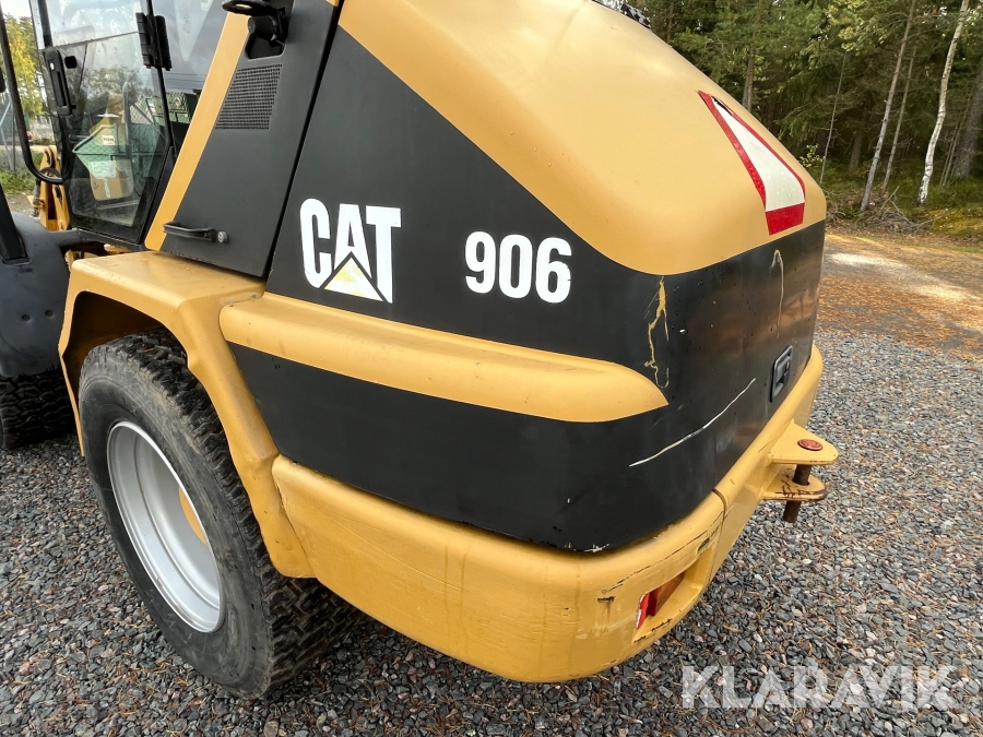 Hjullastare CAT 906 med många redskap