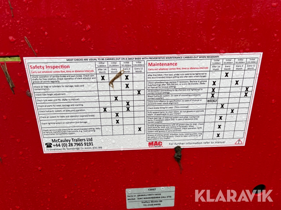 • Serie/chassinummer framgår