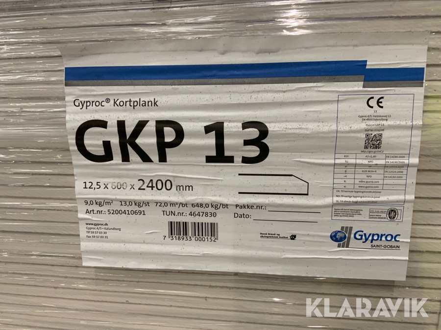 Takgips Gyproc 12,5x600x2400 mm. 150 st skivor