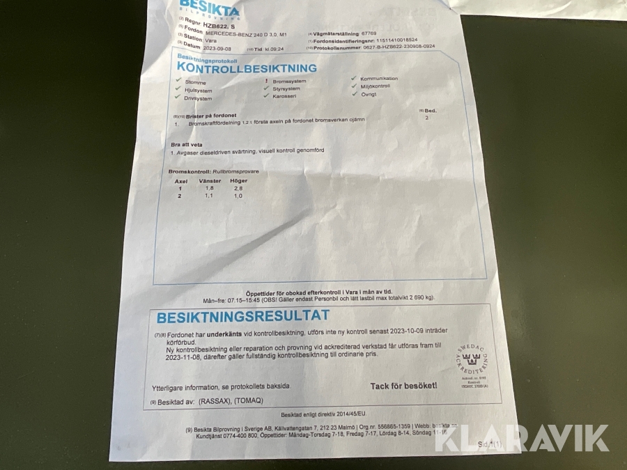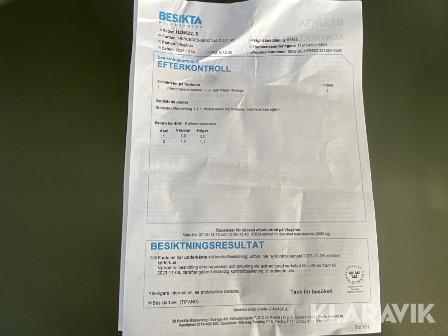 Du som köpare är skyldig att kontrollera objektet vid hämtning. Skiljer sig något avsevärt jämfört med informationen på klaravik.se? Kontakta då Klaravik innan du tar objektet från platsen. Läs fullständiga köpvillkor.
