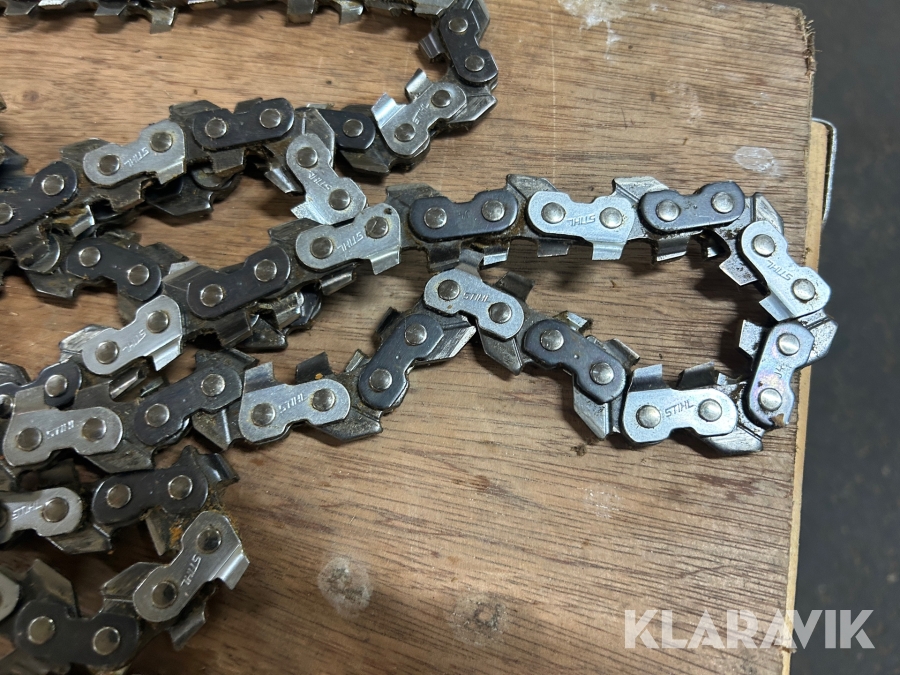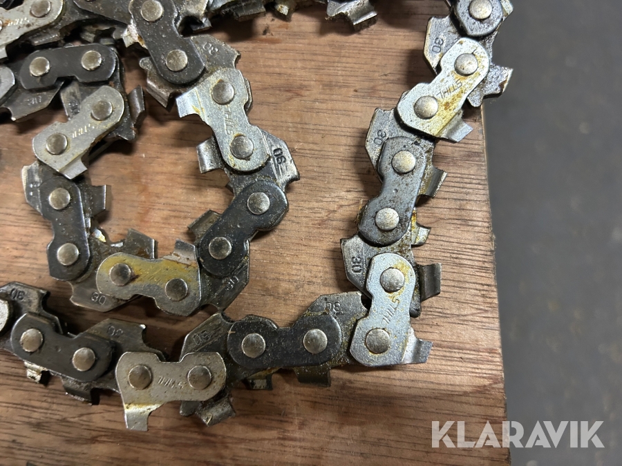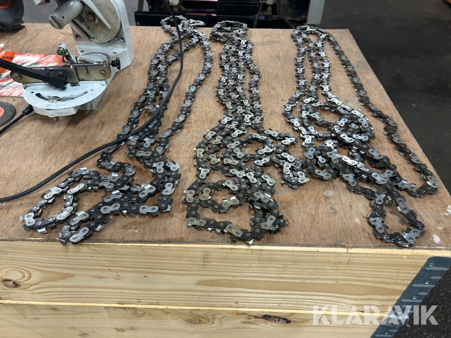 3 st 160 cm sågkedjor varav en är ny och två begagnade, i hårdförkromad metall.