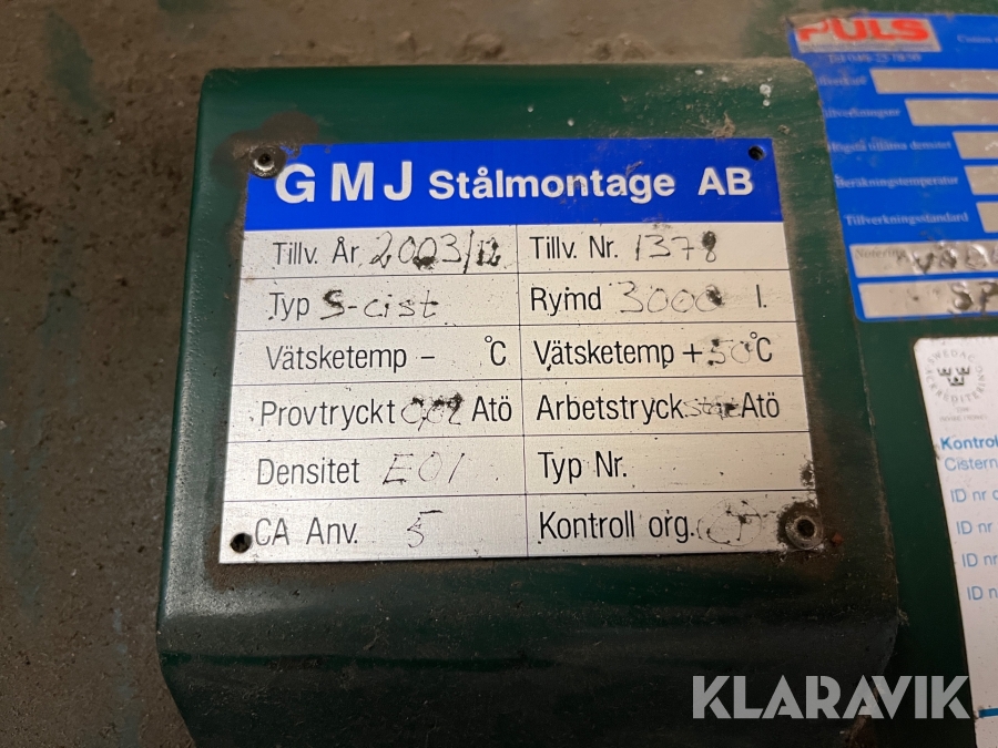 Spilloljetank GMJ Stålmontage S-cist 3000 liter