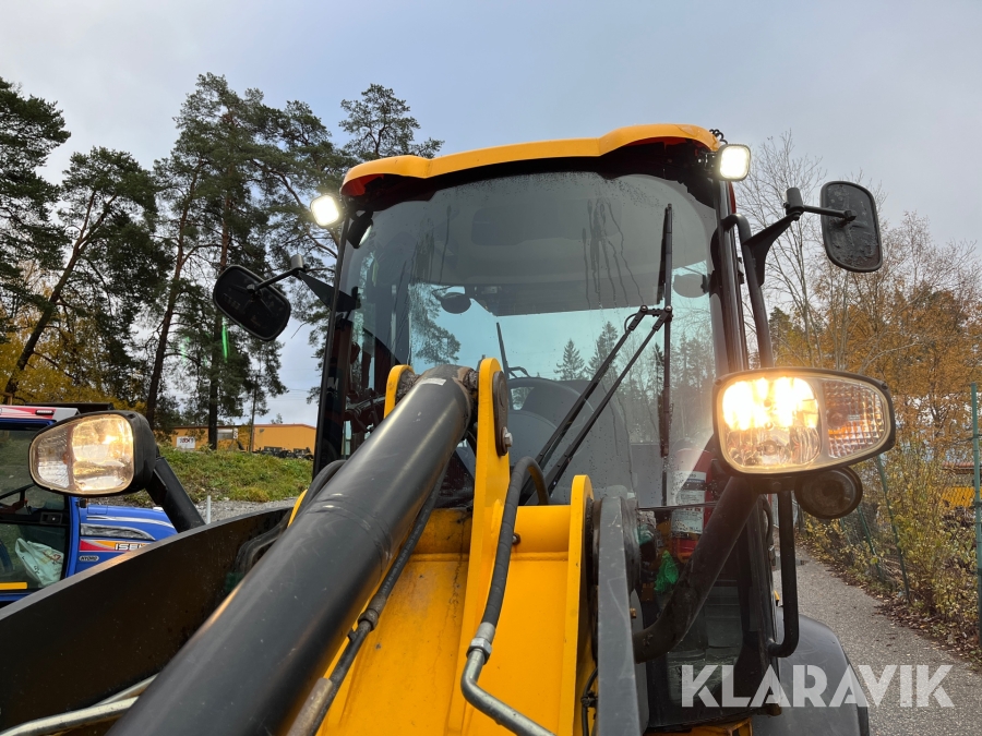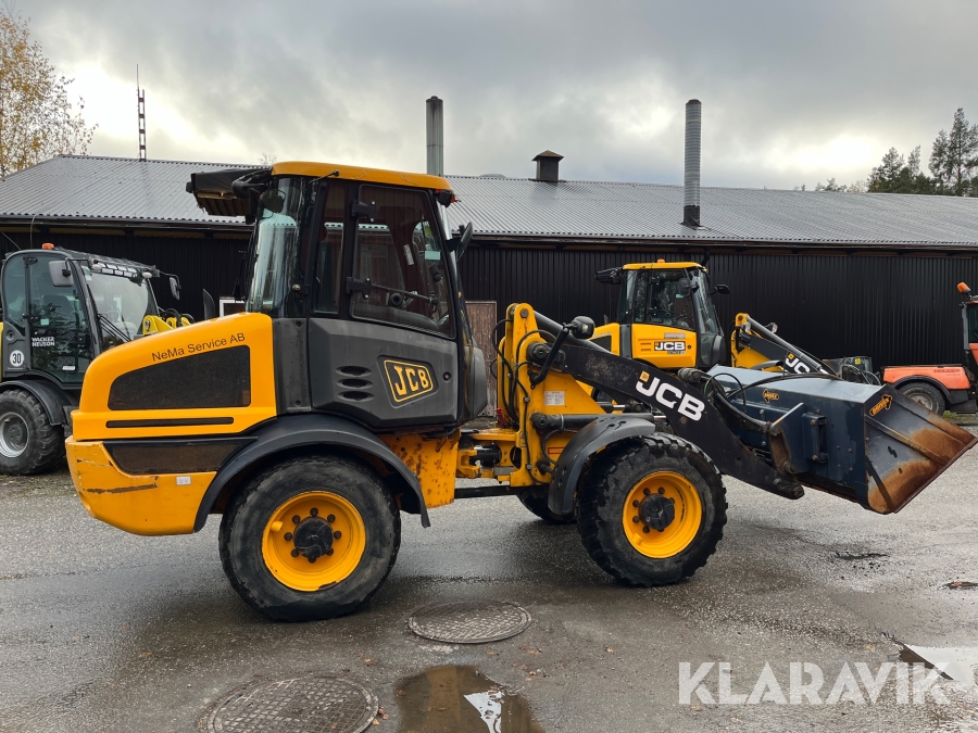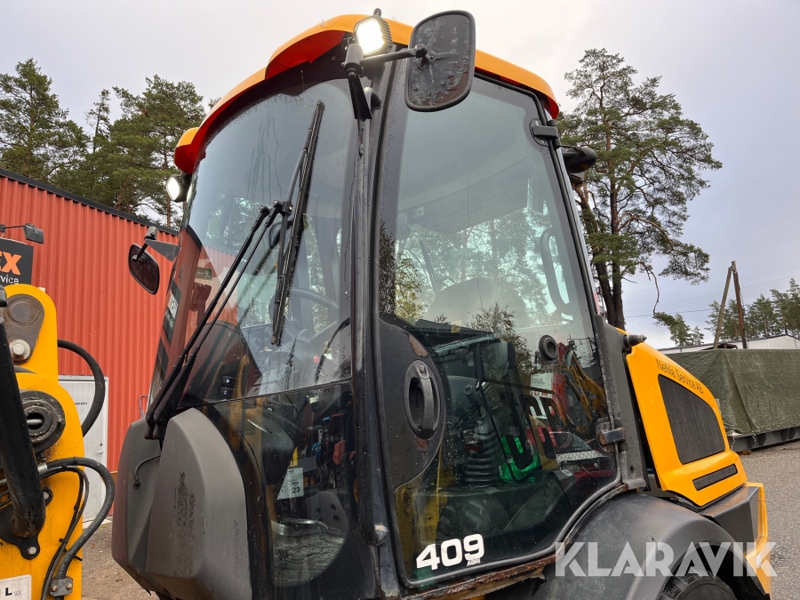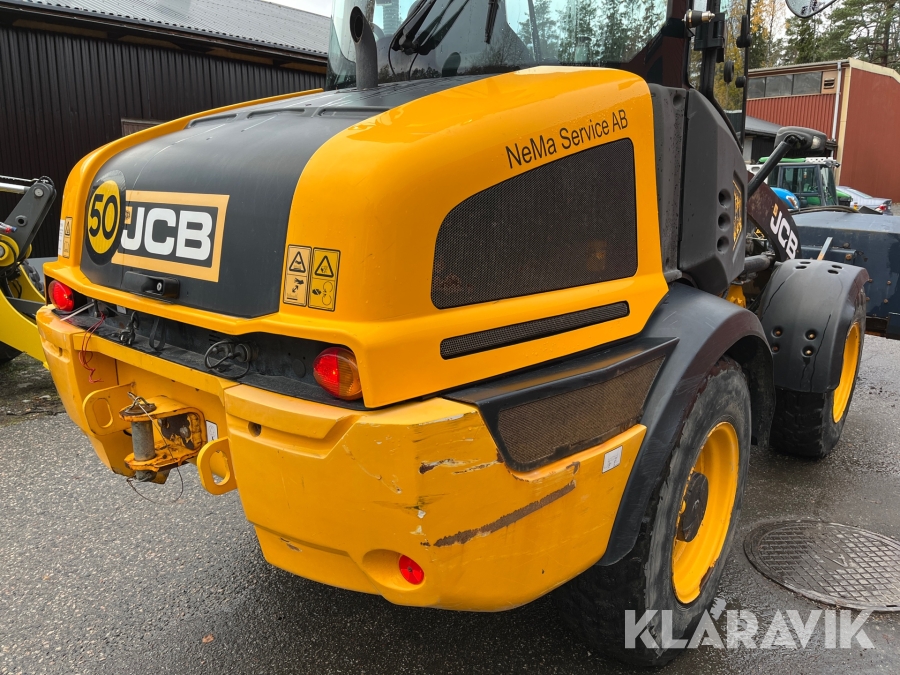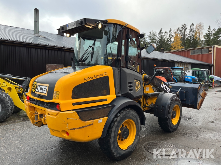 Hjullastare JCB 409 Agri med vikplog och sandspridare