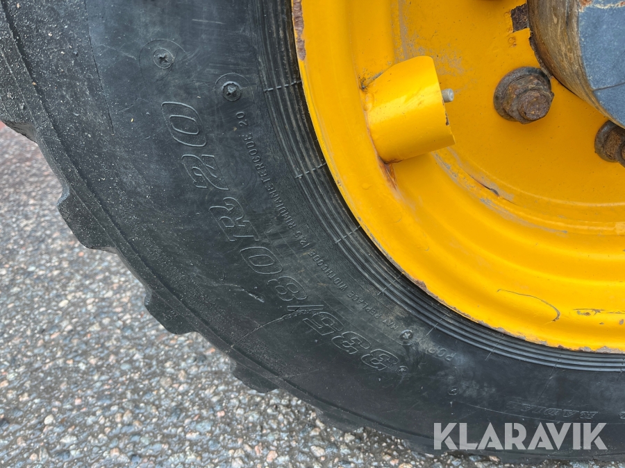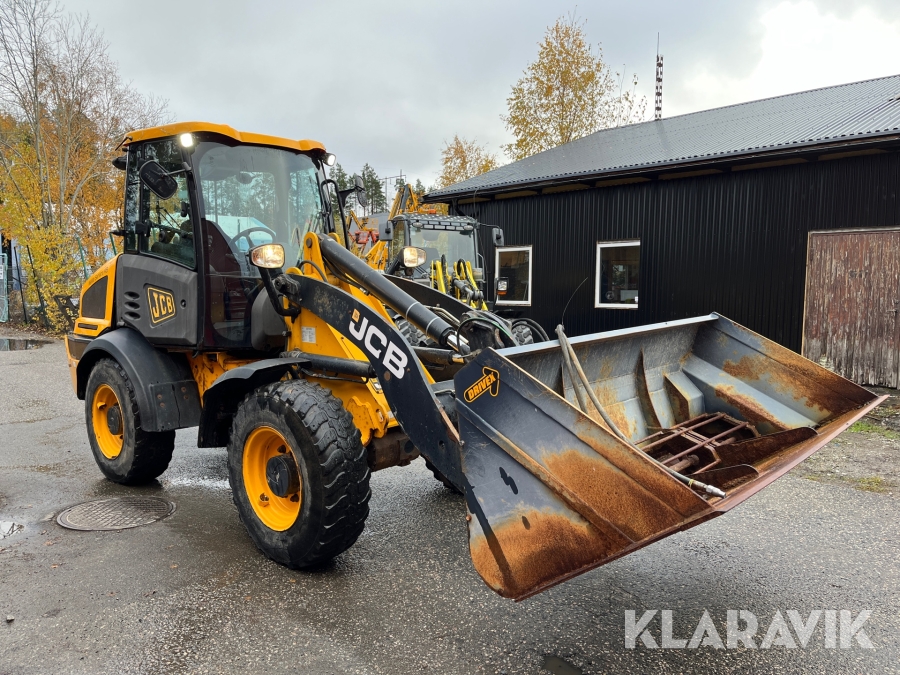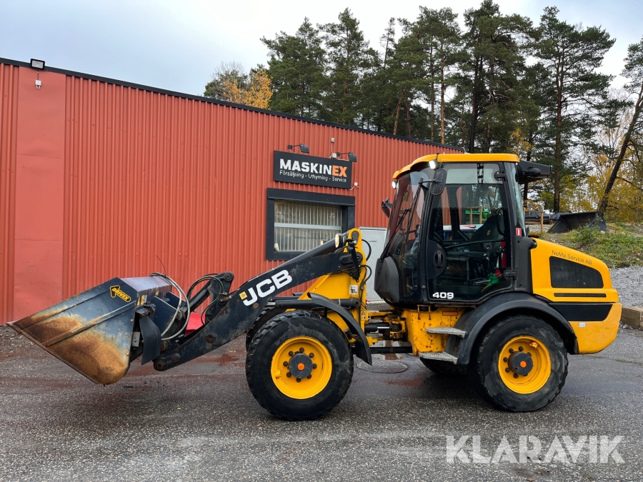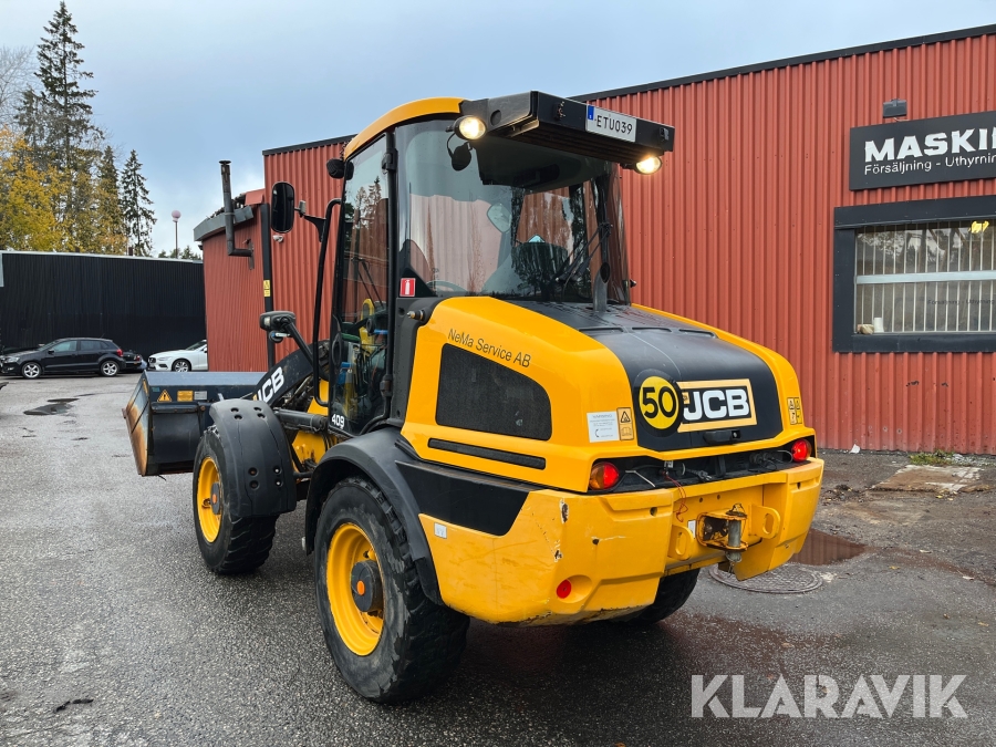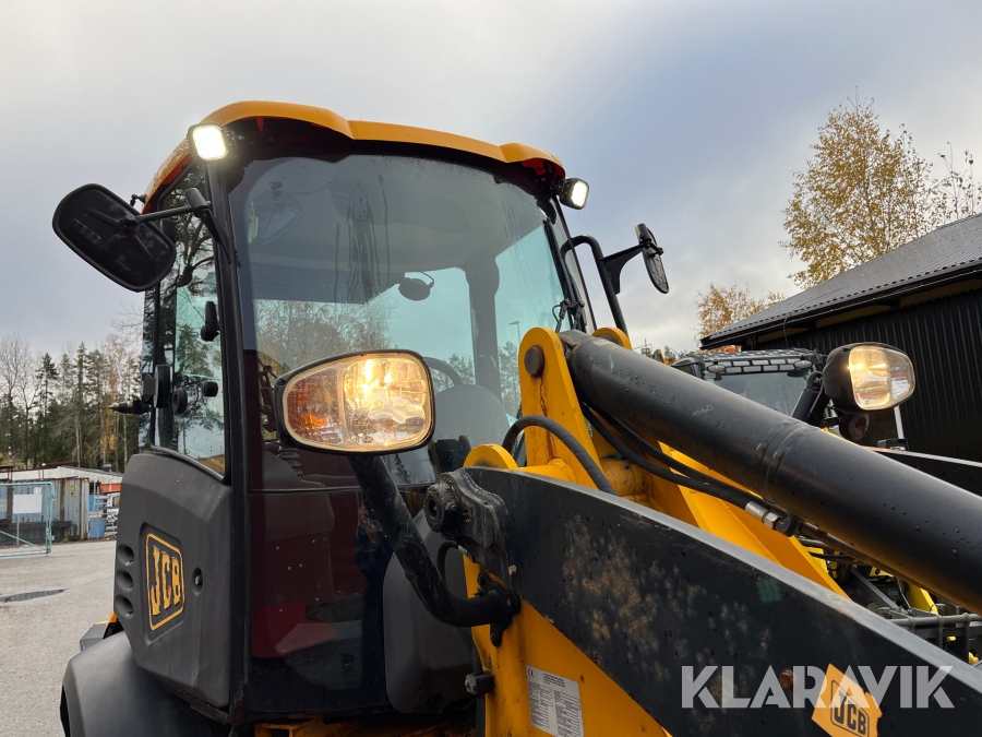Hjullastare JCB 409 Agri med vikplog och sandspridare