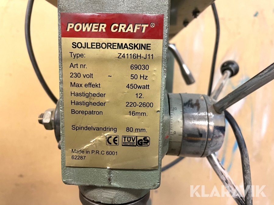 Pelarborrmaskin Power Craft Z4116H-J11