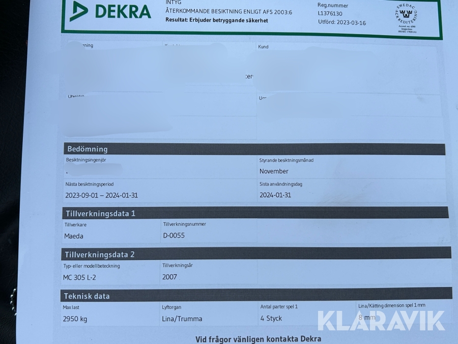 Du som köpare är skyldig att kontrollera objektet vid hämtning. Skiljer sig något avsevärt jämfört med informationen på klaravik.se? Kontakta då Klaravik innan du tar objektet från platsen. Läs fullständiga köpvillkor.