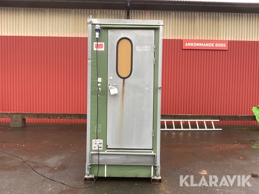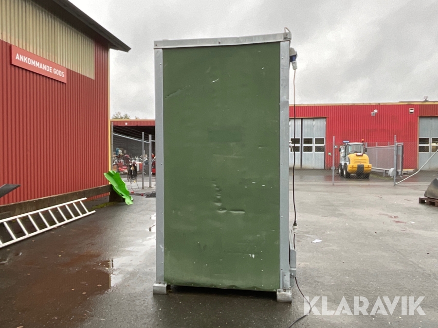 For sheds and containers (10 feet and larger), loading assistance can be purchased. Payment is made either by invoice or by card at the seller's location. The cost per lift is SEK 500 + VAT.