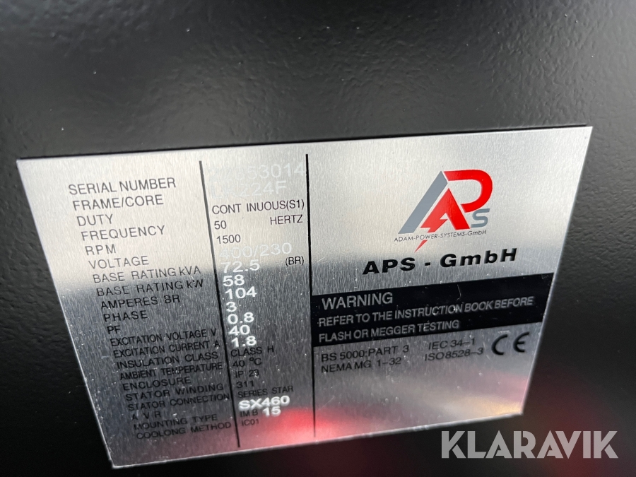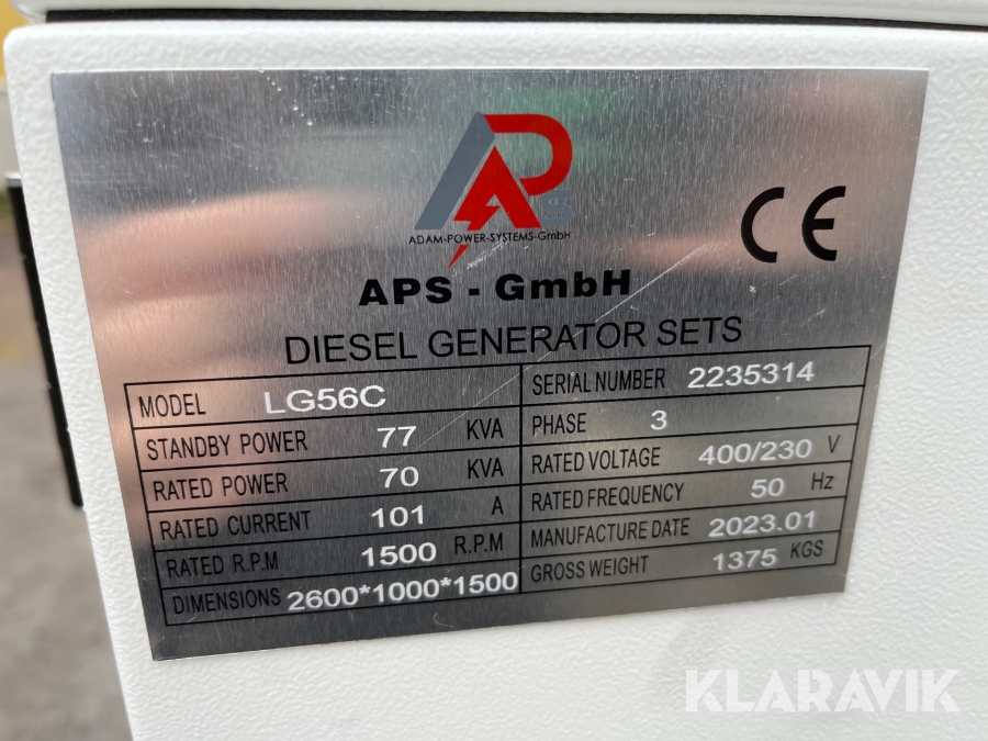Generator/ Elverk APS - Gmbh LG56-C, 77 kVA