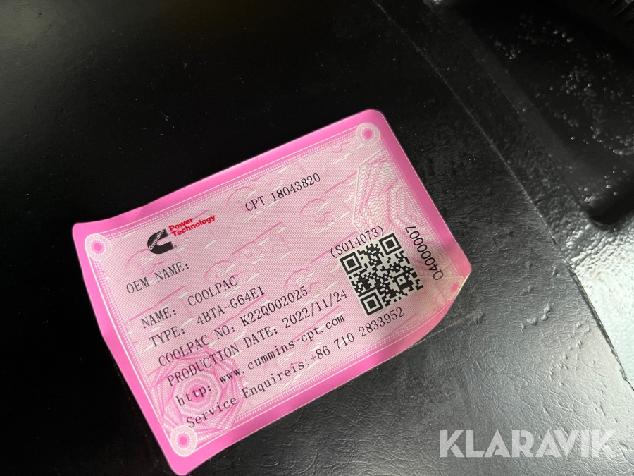 • Serie/chassinummer framgår