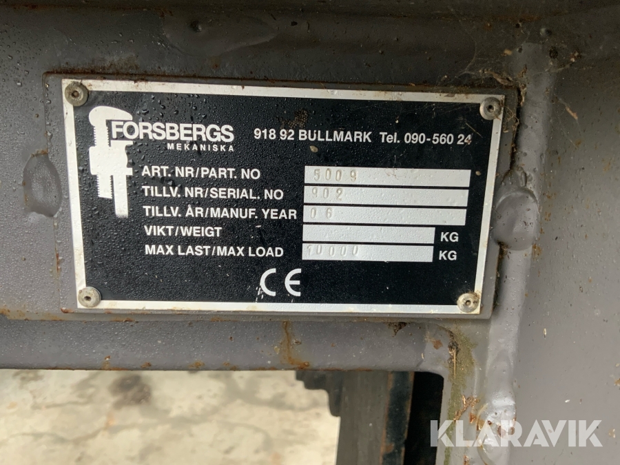Skevfäste Forsbergs Mekaniska 10ton stora bm