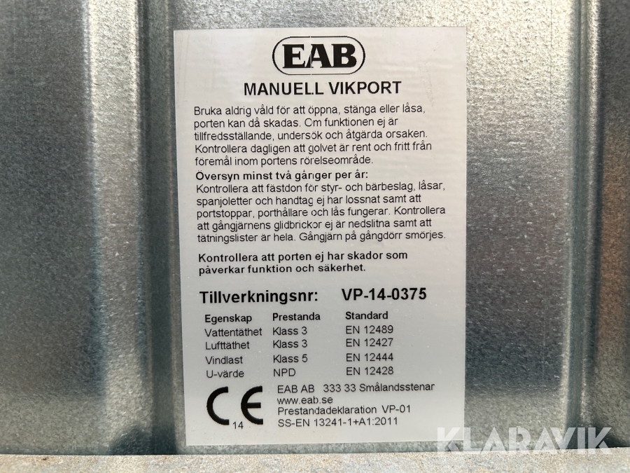 Du som köpare är skyldig att kontrollera objektet vid hämtning. Skiljer sig något avsevärt jämfört med informationen på klaravik.se? Kontakta då Klaravik innan du tar objektet från platsen. Läs fullständiga köpvillkor.