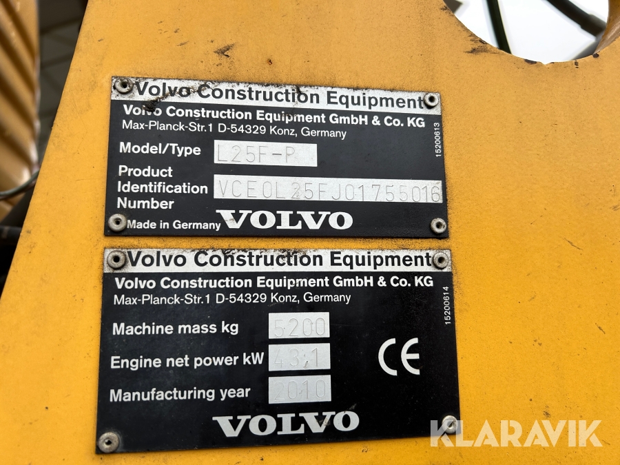 Hjullastare Volvo L25F med skopa och gafflar