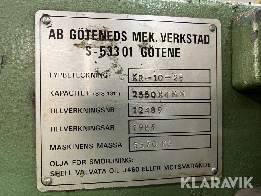 Kantbock Göteneds mekaniska Vekstads KR-10-2E