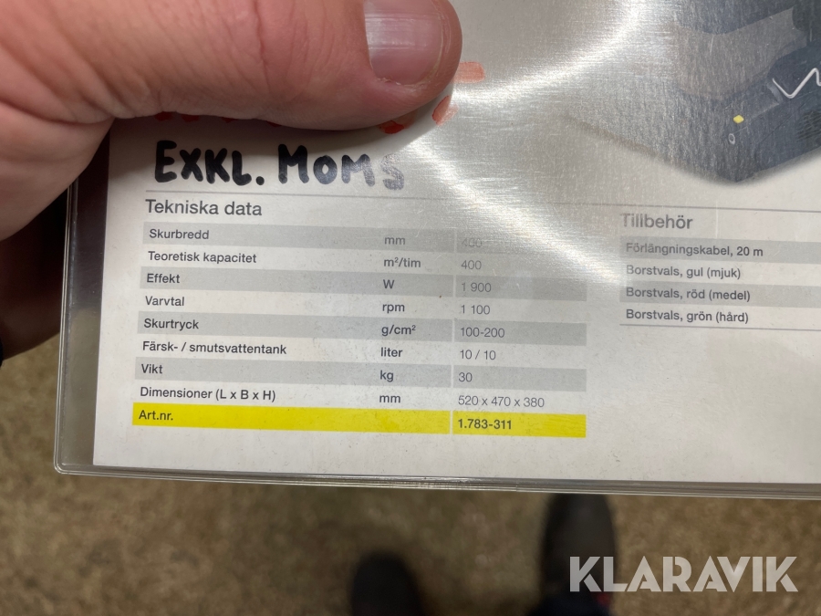 Boka frakt? Det finns ingen specifik information om frakt för just det här objektet, men om du skickar oss en förfrågan via vårt fraktformulär, så undersöker vi möjligheten. Paket, EU-pall eller större maskin? Klaravik har fraktavtal med Schenker och i de fall vi kan hjälpa till med frakt gäller det objekt som ryms i paket eller inom en EU-pall (upp till 120*80 cm och 990 kg). Det går att beställa frakt inom Sverige, dock inte till utlandet. Vid frakt på större maskiner rekommenderar vi gärna transportföretag som du kan kontakta.