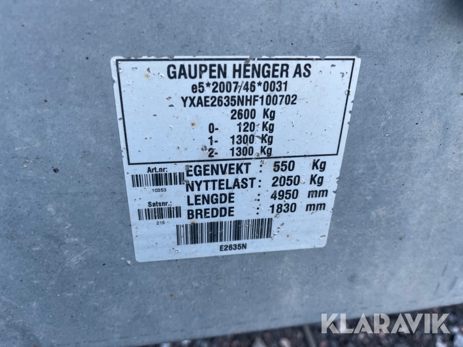 Släpkärra Gaupen E2635N