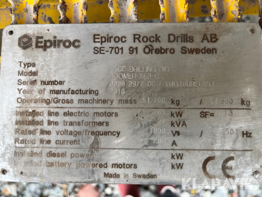 Borrigg Atlas Copco Boomer XE3 + 3 st borraggregat till Epiroc Cop 3038