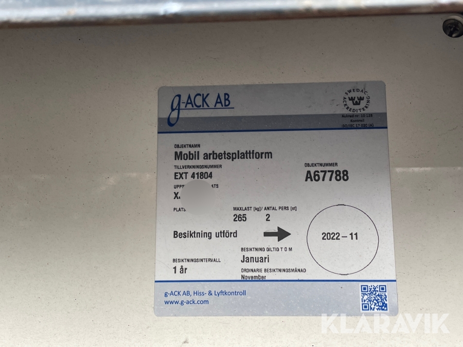 Du som köpare är skyldig att kontrollera objektet vid hämtning. Skiljer sig något avsevärt jämfört med informationen på klaravik.se? Kontakta då Klaravik innan du tar objektet från platsen. Läs fullständiga köpvillkor.