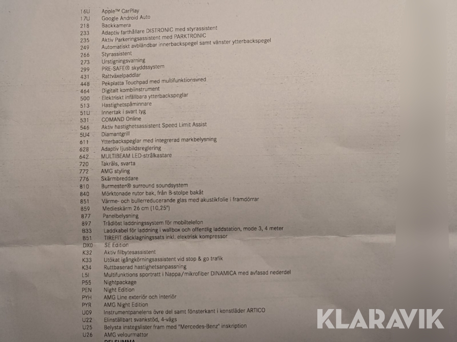 • Serie/chassinummer framgår
