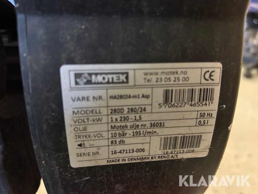 Kompressor Motek 280D 280/24 med spikpistoler