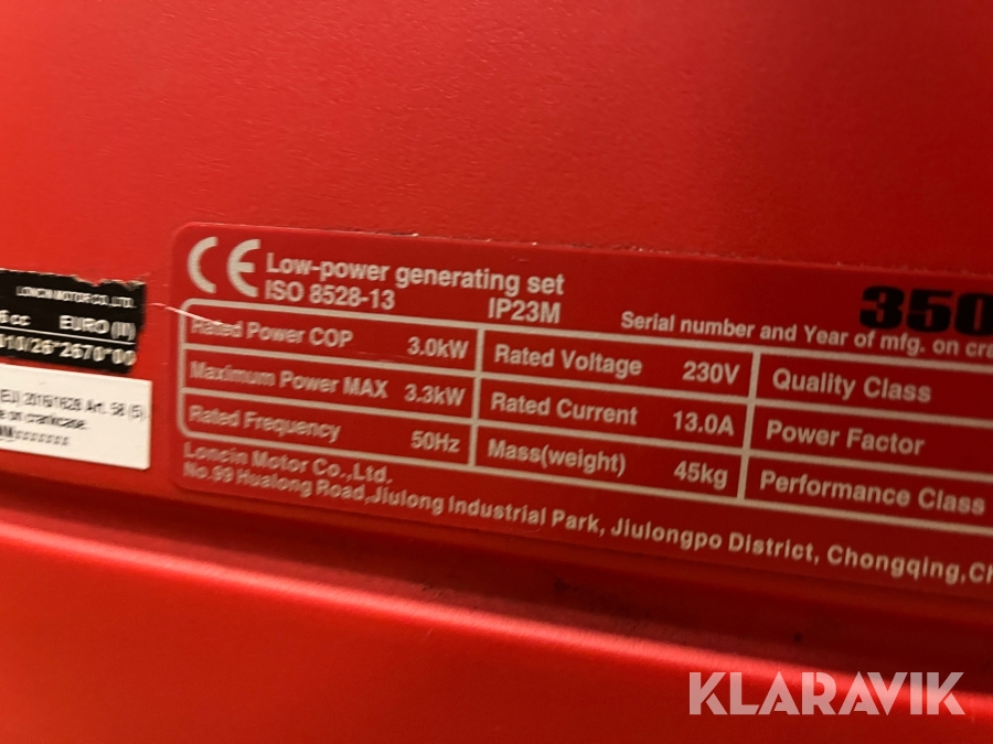 Elverk Loncin 3500i 3.0kW / 3.3kW