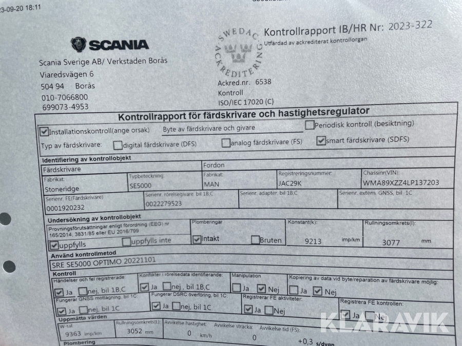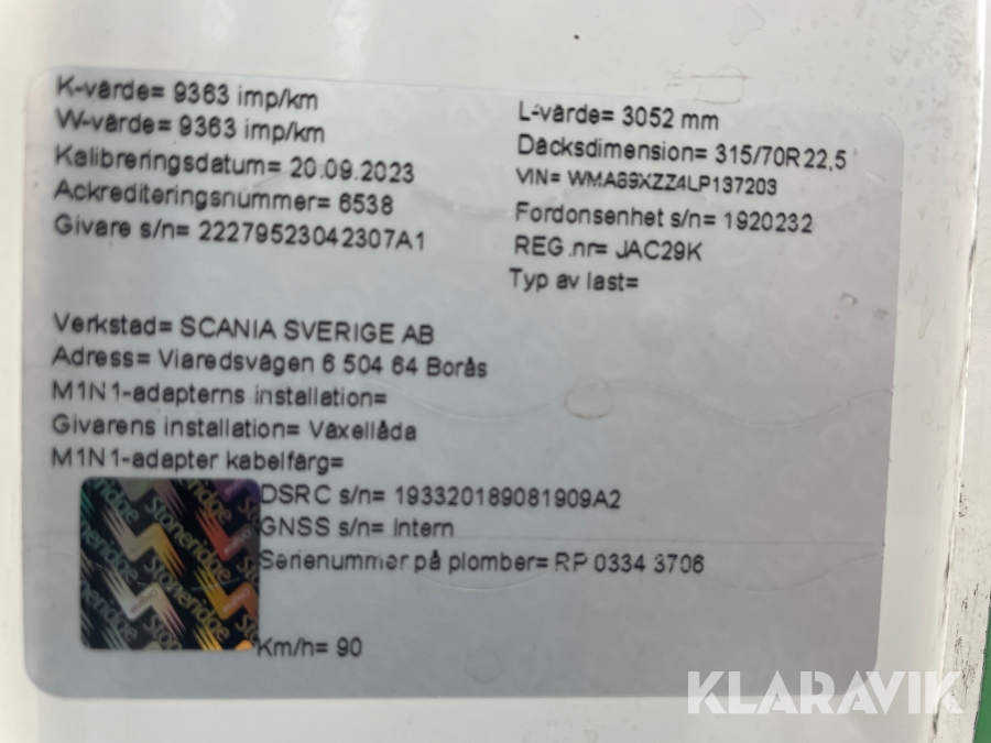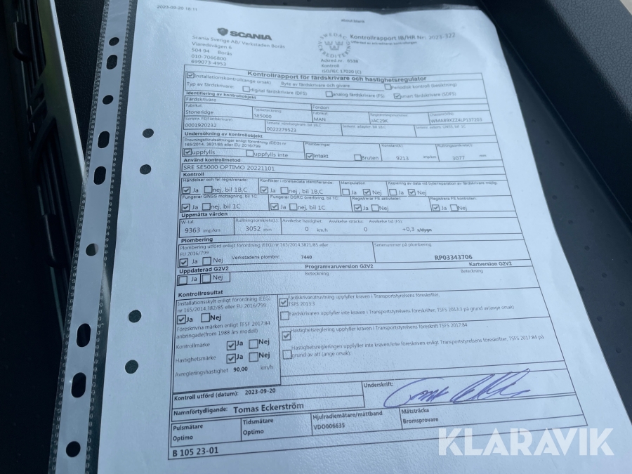 • Serie/chassinummer framgår