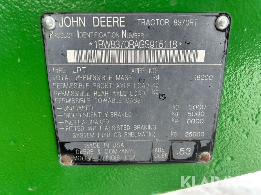 Traktor John Deere 8370 RT