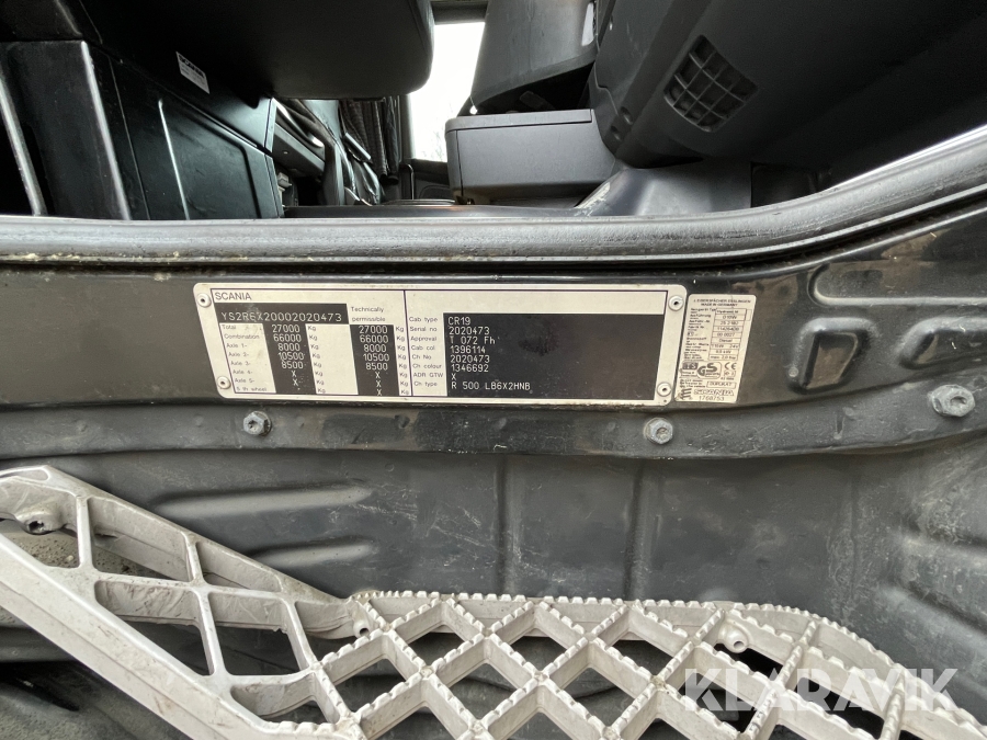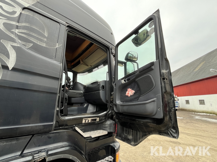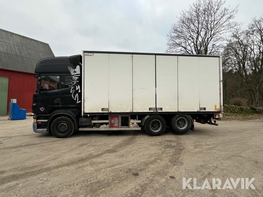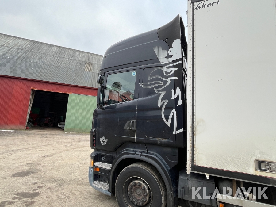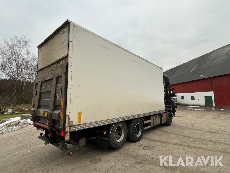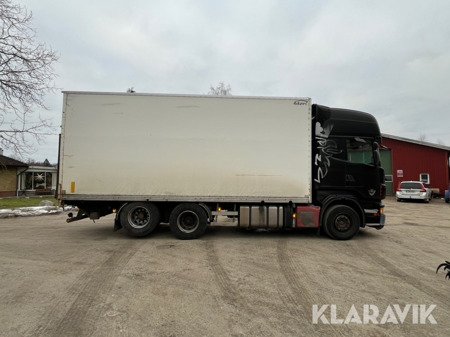 Skåpbil Scania R500 med öppningsbart skåp och bakgavellyft