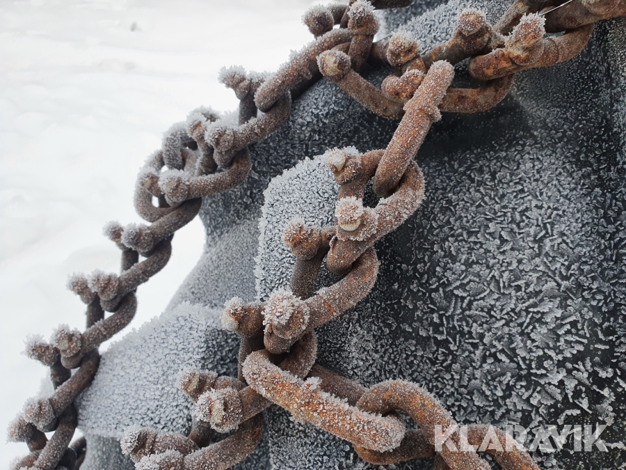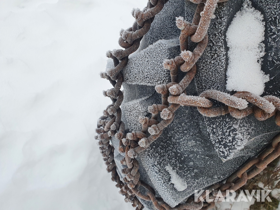 Snökedjor med piggar i rutmönster.