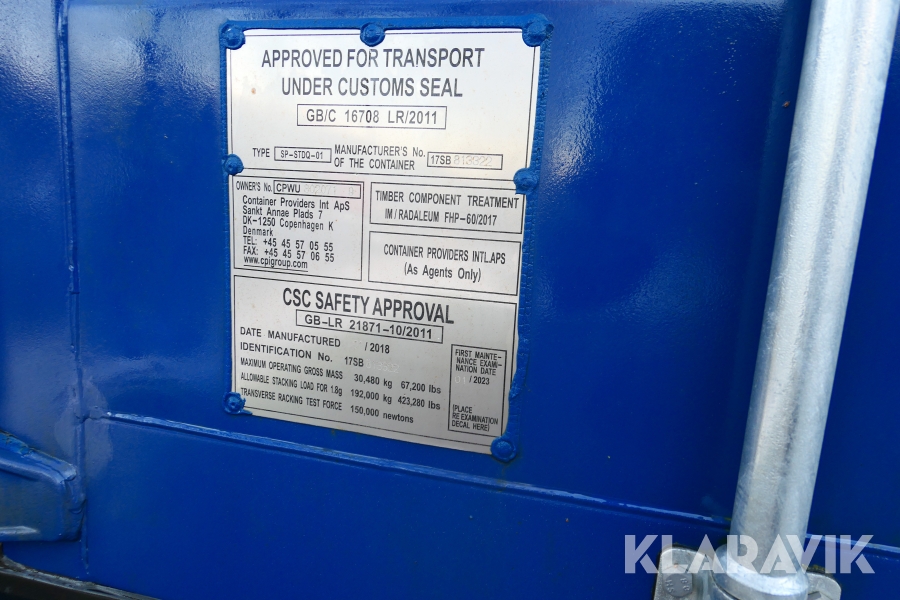 High Cube sjöcontainer 40 fot / 12m container extra hög Container Providers Int ApS