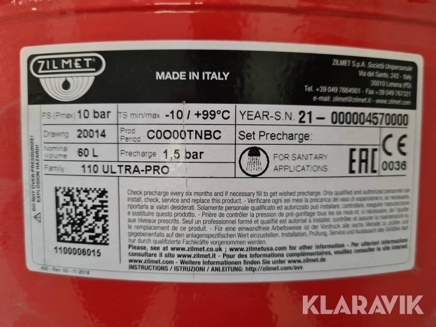 Hydropress Zilmet 60L