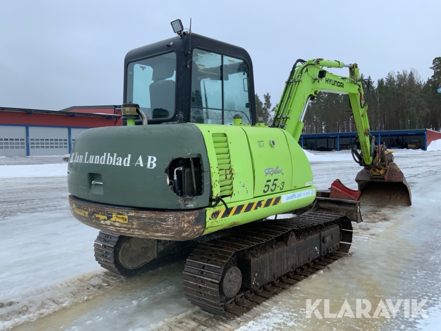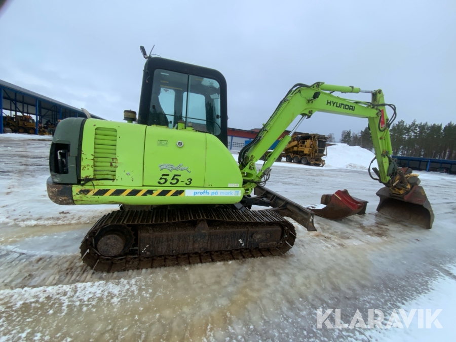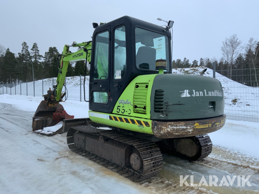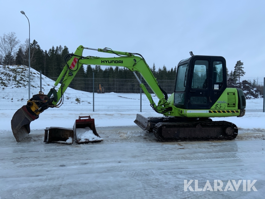 Grävmaskin Hyundai Robex 55-3 med flera redskap