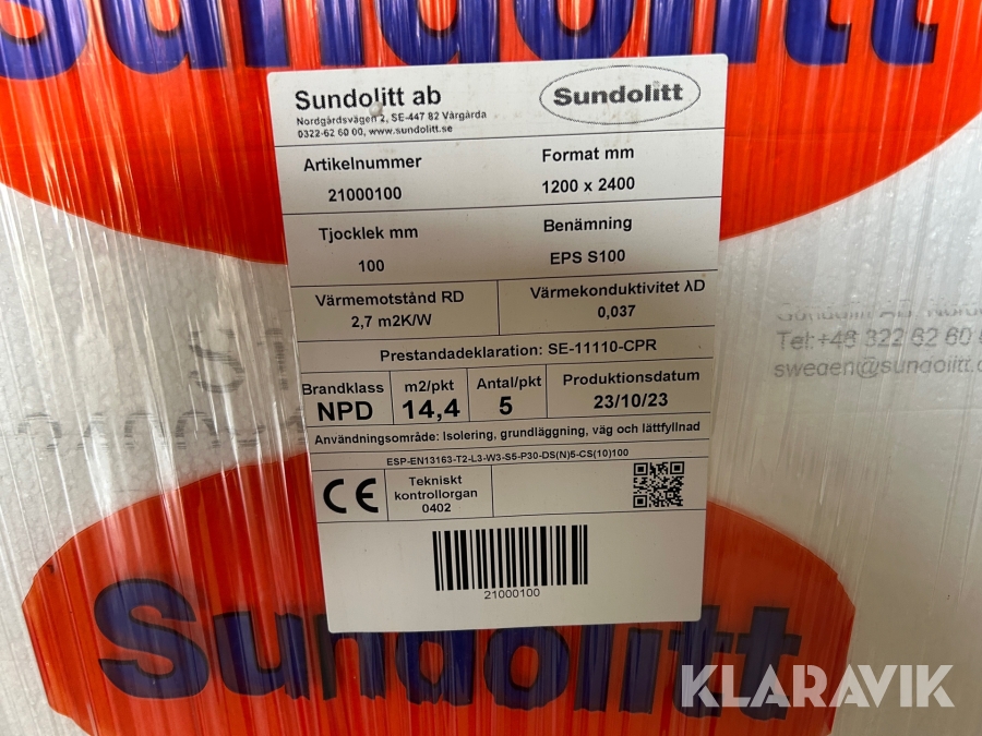 Markisolering Sundolitt 1200 x 2400 x 100 mm 62 st skivor