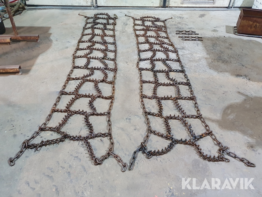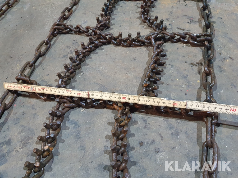 Snökedjor med 9mm piggar i rutmönster.