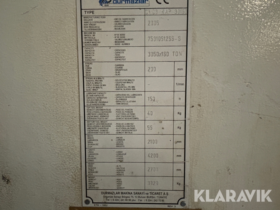 Kantpress Durma CNC 3 HAP 30160