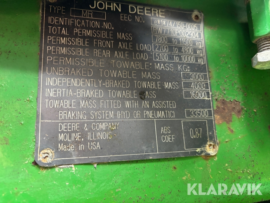 Traktor John Deere 7710 Med frontlyft