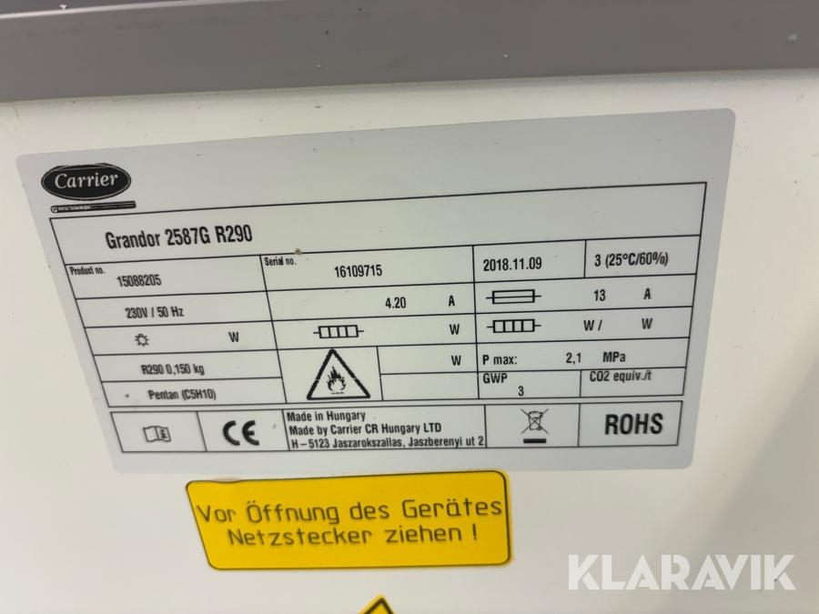 Frysdisk med inbyggd kompressor. Carrier Grandor 2587G