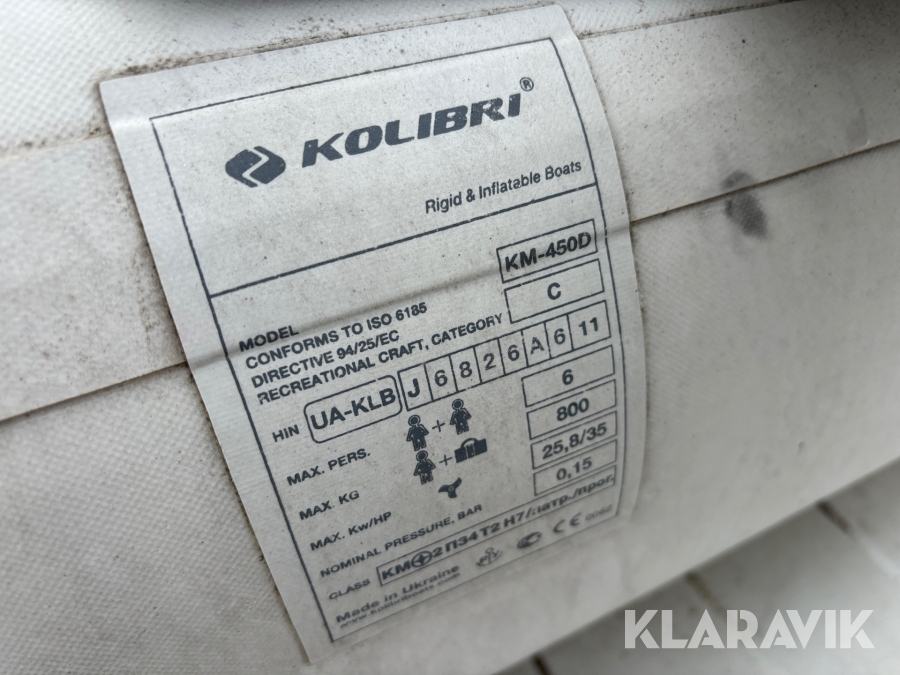 Gummibåt Kolibri KM-450D med åror