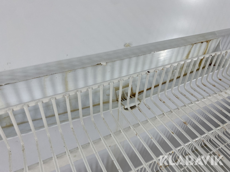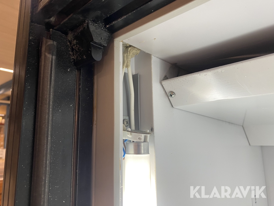 Trasig plastkåpa ovansidan. Smutsig. Bucklor och repor. Ena dörren går igen automatiskt, den andra inte.