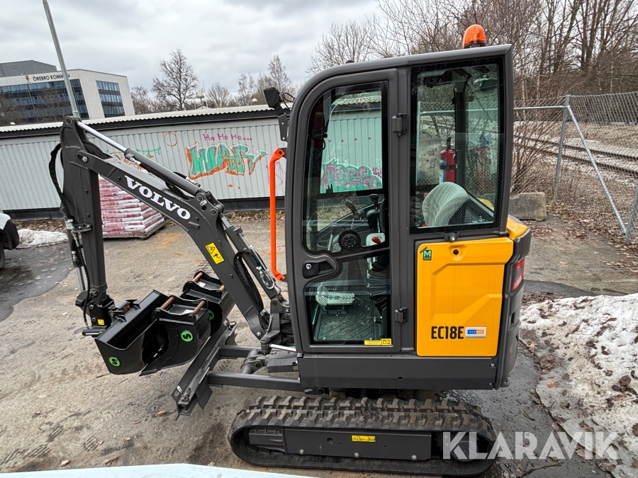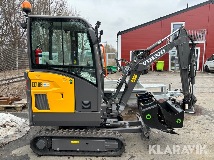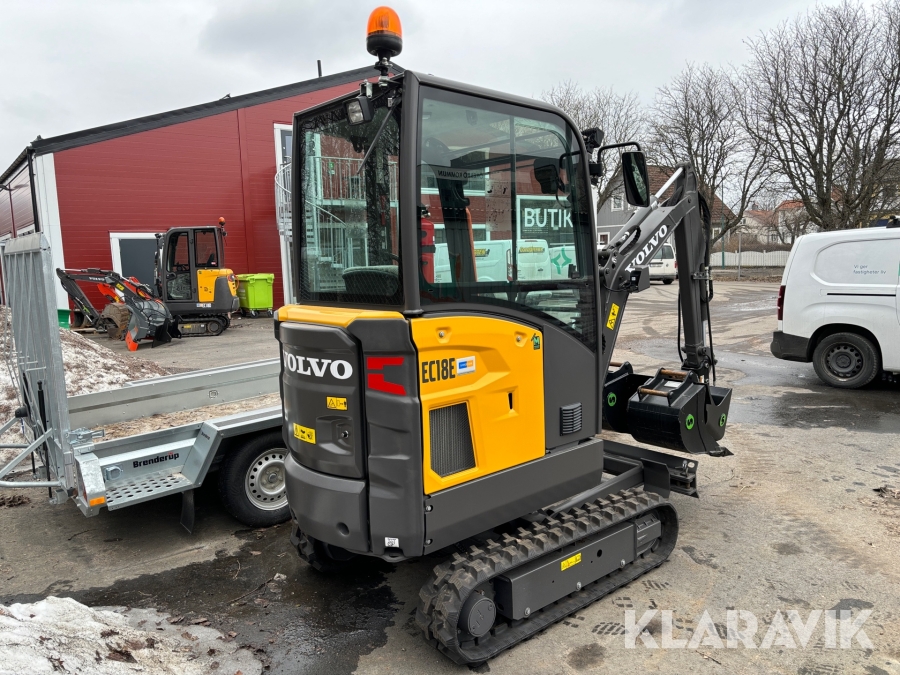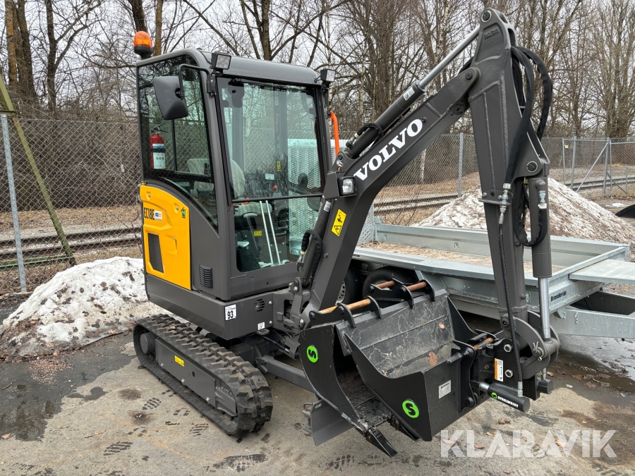 Paket Minigrävare Volvo EC18E med skopor och trailer