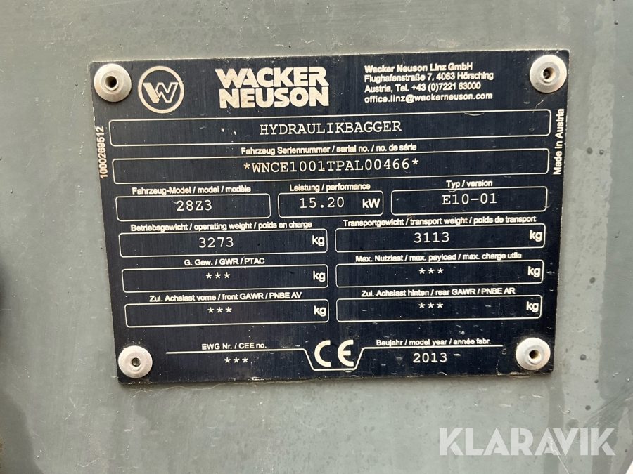 Grävmaskin Wacker Neuson 28Z3 + 4 redskap, hyttilt