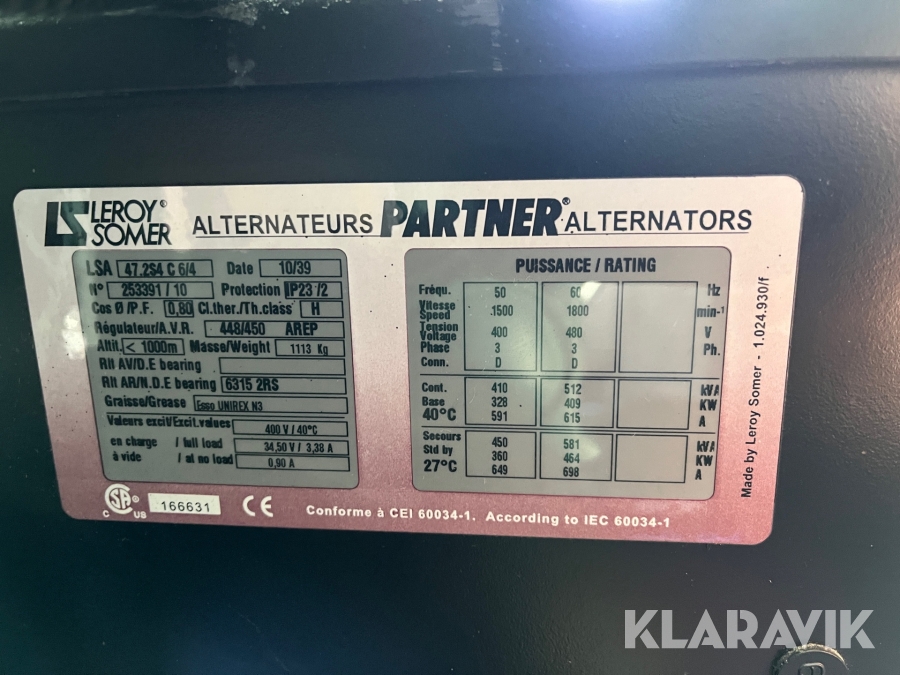 Elverk i container 20 fot Leroysomer Volvo 512 kVA