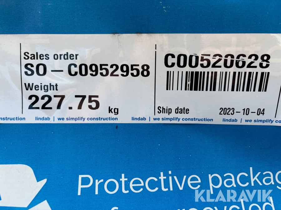 Boka frakt? Det finns ingen specifik information om frakt för just det här objektet, men om du skickar oss en förfrågan via vårt fraktformulär, så undersöker vi möjligheten. Paket, EU-pall eller större maskin? Klaravik har fraktavtal med Schenker och i de fall vi kan hjälpa till med frakt gäller det objekt som ryms i paket eller inom en EU-pall (upp till 120*80 cm och 990 kg). Det går att beställa frakt inom Sverige, dock inte till utlandet. Vid frakt på större maskiner rekommenderar vi gärna transportföretag som du kan kontakta.