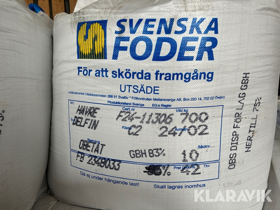 Utsäde Svenska Foder Havre (Delfin) - 4 st storsäck