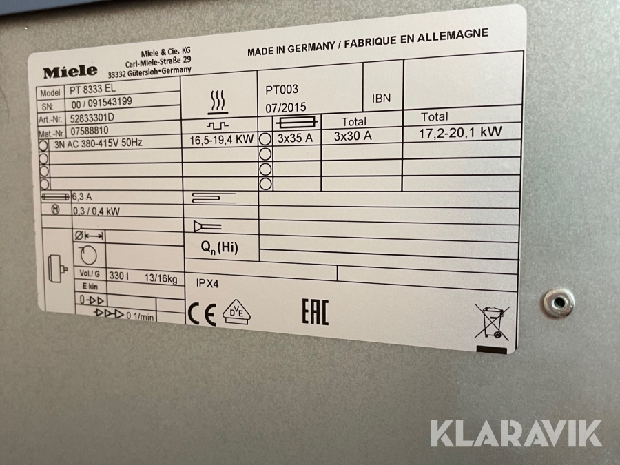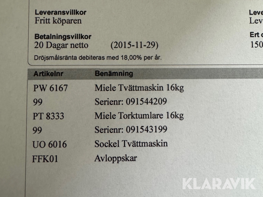 Boka frakt? Det finns ingen specifik information om frakt för just det här objektet, men om du skickar oss en förfrågan via vårt fraktformulär, så undersöker vi möjligheten. Paket, EU-pall eller större maskin? Klaravik har fraktavtal med Schenker och i de fall vi kan hjälpa till med frakt gäller det objekt som ryms i paket eller inom en EU-pall (upp till 120*80 cm och 990 kg). Det går att beställa frakt inom Sverige, dock inte till utlandet. Vid frakt på större maskiner rekommenderar vi gärna transportföretag som du kan kontakta.